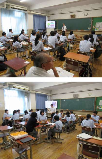 授業は、5・6限の2コマで受講する生徒を入れ替えして、学科の特徴を生かした同じ内容でかつ各学校の特色についてのアピールも含めて行われました。