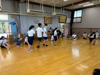 内容は、アンパンマンの劇、おりがみやおやとり、お誕生日の歌などです。リズムにあわせてスキップしたりポージングしたり。3年生は一生懸命取り組むことができました。