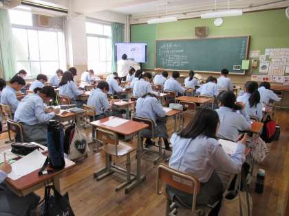 1年2組の家庭科の授業では、既製服を購入する際の表示ラベルの見方について学びました。