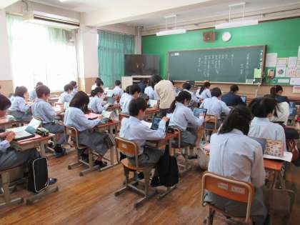1年3組の国語科の授業では、「提言をしよう」というテーマで、根拠となる情報収集をしました。