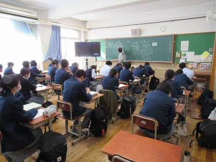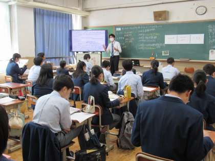 3年3組の数学科の授業では、平行線と線分の比の逆が成り立つかどうかの証明を考えました。