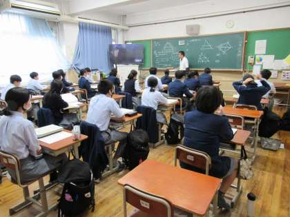 3年3組の数学科の授業では、相似な図形の小テストの後、相似比の問題を解きました。