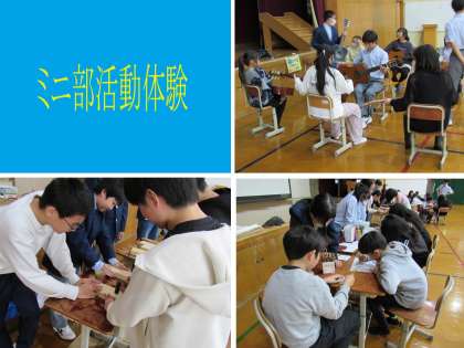 みんな興味のある部活で短時間ながらも部員のお兄さん、お姉さんから説明を受け、楽しい体験となり、入部選択の良い参考となったことでしょう。