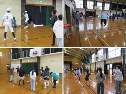 続いて、体育館内に設けられた各部活のブースにおいてミニ部活動体験をしました。
