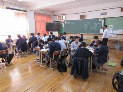 2年4組の英語科の授業では、留守電の内容の聞き取り練習をしました。
