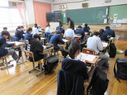 2年2組の理科の授業では、定期テストに向けて、生物の範囲の小テストを受け、続いて物理の範囲の問題演習をしました。