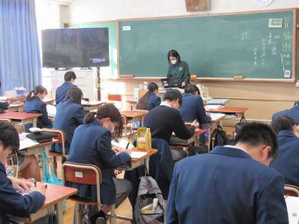 3年2組の国語科の授業では、「おくの細道」の原文と現代訳を対照して、内容理解に努めました。
