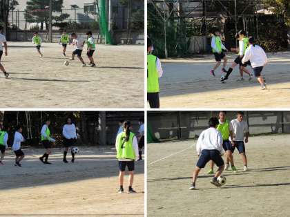 3年3組の保健体育科の授業では、サッカーの基本練習とセンタリングからのシュート練習に続いて、ミニゲームをしました。