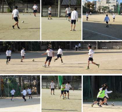 3年3組の保健体育科の授業では、サッカーの基本練習とセンタリングからのシュート練習に続いて、ミニゲームをしました。