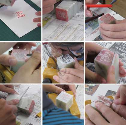3年2組の美術科の授業では、前回から取り掛かった石の彫刻の制作の続きしました。