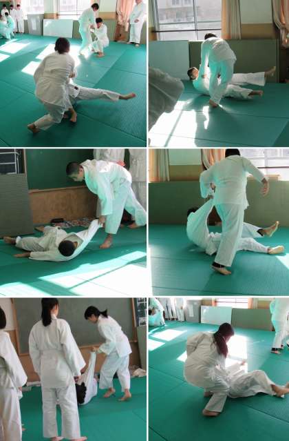 3年3組の保健体育科の授業では、柔道の「体さばき」「くずし」「後ろ受け身」「横受け身」「組み手からの後ろ受け身」「組み手からの横受け身」の練習をしました。