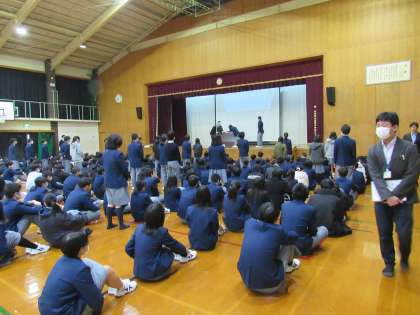 冬休みが終わり、今日から3学期がスタートし、体育館で3学期始業式が行われました。