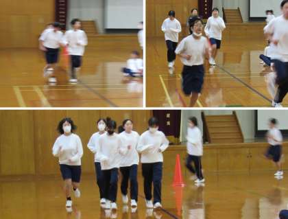 1年3組の保健体育科の授業では、7分間走に続いてバスケットボール、バレーボール、そしてバドミントンのミニゲームをしました。