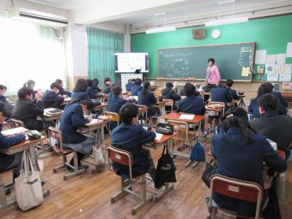 1年2組の数学科の授業では、球体の表面積と体積の求め方について考えました。