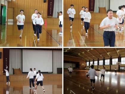 2年2組の保健体育科は、8分間走に続いてバドミントンの練習をしました。