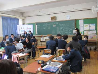 3年2組の英語科の授業では、給食と弁当のどちらがいいかということについて、ミニディベートをしました。