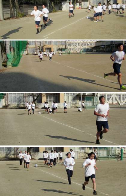 3年3組の保健体育科の授業では、8分間のウォーキングでウォーミングアップした後、8分間走を計測しました。