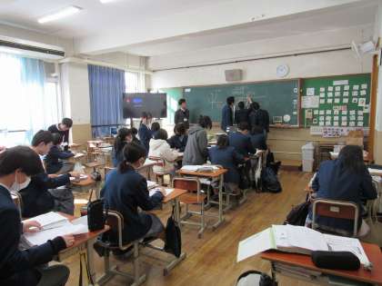 3年4組の数学科の授業では、「三平方の定理」を使って図形問題を解き、また、冬休み明けテストの返却と解説を受けました。