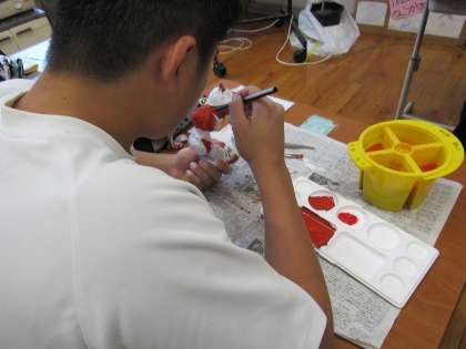 1組の美術科の授業では、前回に続いて、2月に開催される「小さな巨匠展」への出品作品(嘉楽中阿修羅像…当校の教職員一人一人がモデル)を制作しました。