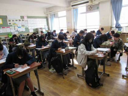 3年2組と3組の数学科の授業では、入試に向けて過去問に取り組みました。