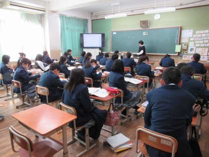 1年3組の理科の授業では、地層の繋がりをボウリング調査の結果から考察しました。