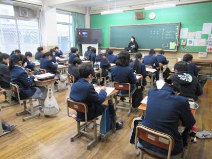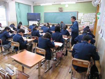 1年2組の数学科の授業では、文字の式の復習をして練習問題を解き、皆で確認し合いました。