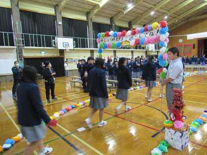 本日(12日)、1,2限目に「3年生を送る会」が体育館で開催されました。