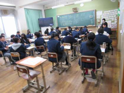 1年3組の国語科の授業は、今年度最後であり、1年間の振り返りを行い、さらに2年生に向けての叱咤激励の言葉を受けました。