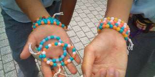 2年生の体験学習で作った作品です。念珠作成体験で作った念珠と、銀閣寺に行って、作った匂い袋です。