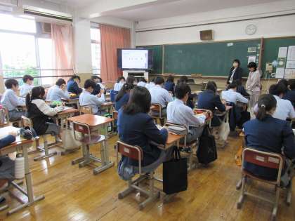 2年3組の英語科の授業では、留学生を京都市内の観光に連れていく時のプランを英語で発表しました。
