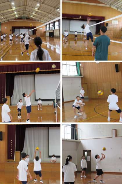 2年2組の保健体育科の授業では、バレーボールの基礎練習に続いてミニゲームをしました。