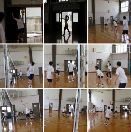 3年4組の保健体育科の授業では、三段攻撃が成功すれば2点獲得という特別ルールでバレーボールの試合をしました。