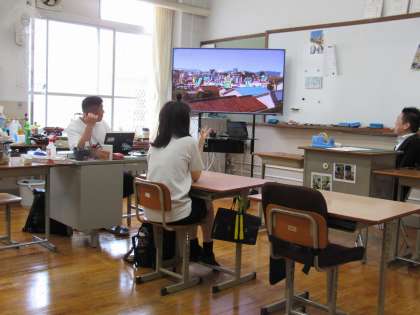 1組の社会科の授業では、NHKの「コノマチリサーチ」という教育番組を見て嘉楽中学校区をリサーチする際の参考にしたり、アメリカの偉人について学んだりしました。