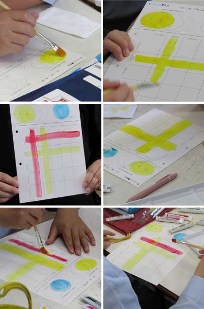 1年4組の美術科の授業では、ルノワールの作品を鑑賞して、同じ黒や白の中にも複雑な色があるという、色の中の色味について学びました。