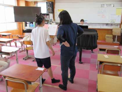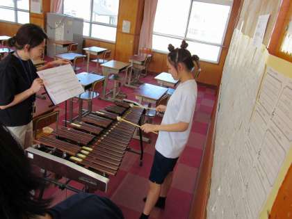 1組の音楽科の授業では、文化祭で発表する予定のジッタリン・ジンの楽曲「プレゼント」の歌唱練習、同曲の木琴と鉄琴演奏の練習、そしてミュージカル「アニー」から「Tomorrow」の歌唱練習をしました。