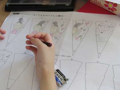 1組の生活科の授業では、学校祭(文化の部)で発表する際、前振りに使うパラパラ漫画を引き続き制作しました。