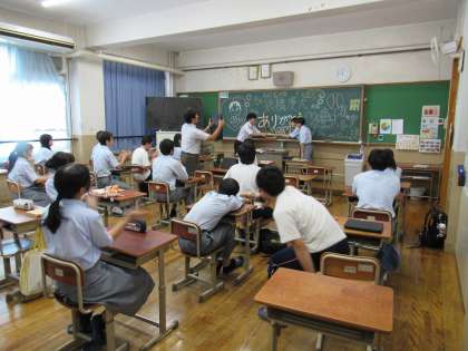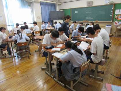 3年3組の数学科の授業では、二次方程式の応用問題を班で取り組みました。