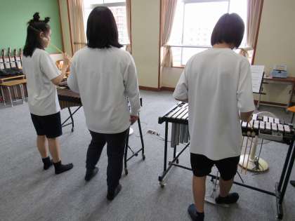 1組の音楽科の授業では、学校祭(文化の部)で発表するジッタリン・ジンの楽曲「プレゼント」の器楽(木琴と鉄琴)演奏練習をしました。