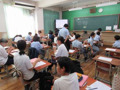 1年3組の数学科の授業では、比例式を使った文章問題を解きました。