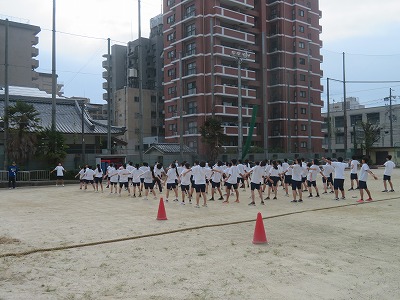 1限、3年生は学校祭体育部の学年練習を実施しました。