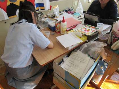 1組の生活科の授業では、1年生はある有名な人気ゲーム機のためのラックの制作を始め、3年生は数学の問題に取り組みました。