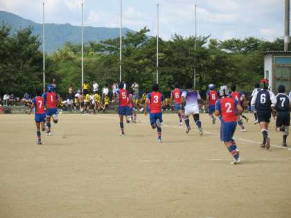 ラグビー部は,9月26日(土)に吉祥院グランドにおいて,勧修中学校と対戦しました。開始早々にトライを決め,その後も着実にトライ,ゴールと決め快勝しました。
