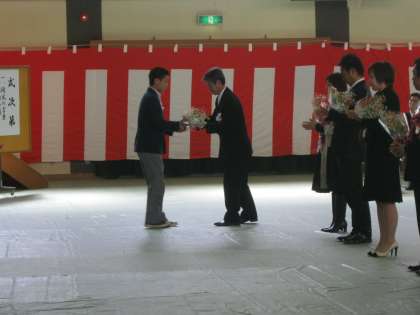 お世話になった先生方に言葉を添えて花束を渡しました。