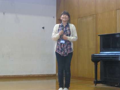 写真中:スクールカウンセラーの木守先生のあいさつ