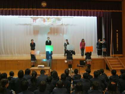 写真右:同じくティーチャークイズです。先生方の特技をクイズにしています。