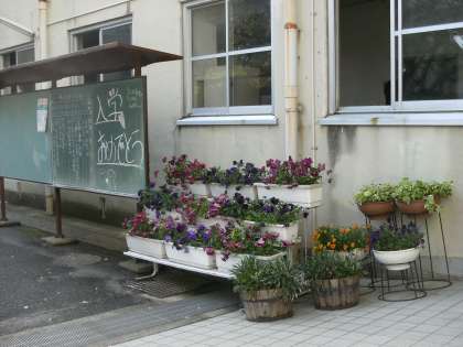 昨日の雨がうそのように、今日はすばらしい天気になりました。用務員さんに育てて頂いた校門の花も、元気に登校する生徒のみなさんを温かく出迎えてくれています。今日も一日精一杯頑張りましょう!