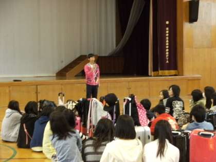 いよいよ修学旅行です。朝早くから続々と体育館に集合。結団式を行いました。校長先生、修学旅行委員長の話に続き、旅行に同行していただく看護師さん、添乗員さん、カメラマンさんの紹介がありました。みんなわくわくした表情の中にも、少しの緊張感が見られ、いよいよ出発だなあと実感がわいてきたのではないでしょうか。今日は、平和記念公園での「平和セレモニー」、ガマ入壕体験等平和学習をしてから、各民家へのホームステイとなります。楽しむところは存分に楽しんで、学習するところはしっかりと学習してきてください。