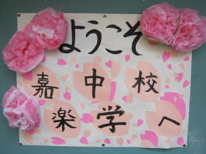 写真中:歓迎の掲示物