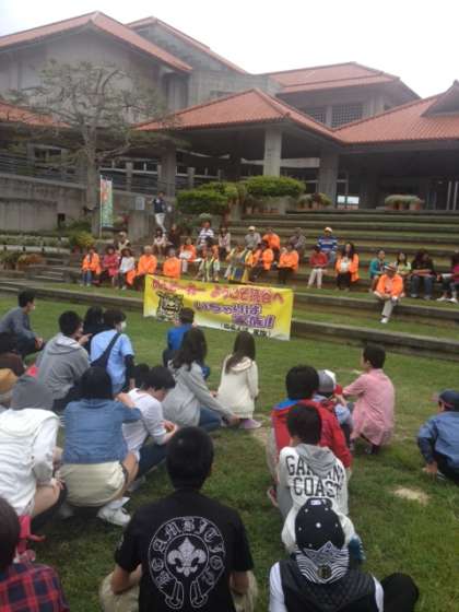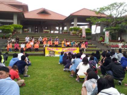 三線と踊りの歓迎の後入村式がありました。読谷村の方から説明を受けました。