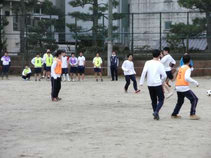 本日午前中に卒業式練習をしたあと、5・6限に球技大会を行いました。男子はグランドでサッカー、女子は体育館でバレーボールをしました。みんなクラスごとに声を掛け合い、一生懸命に競技を楽しんでいました。